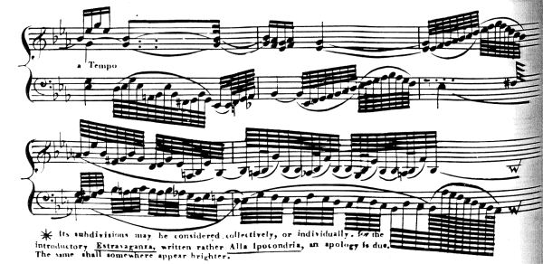 Example 1: Anthony Phillip Heinrich, “Toccata Grande Cromatica,” excerpt, with 512th and 1024th notes (incorrectly notated as 1024th and 2048th notes) at the end of the example.